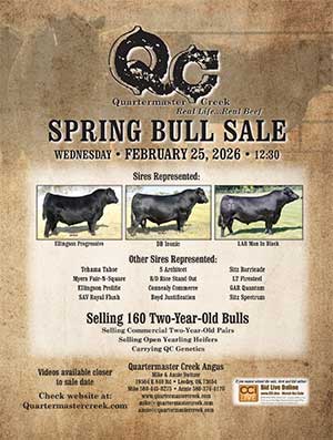 Quartermaster Creek Angus • Mike & Annie Switzer • 19564 E 840 Rd • Leedey, OK 73654 • Mike’s Cell: 580-445-8275 • Annie’s Cell: 580-374-4170 • mike@quartermastercreek.com